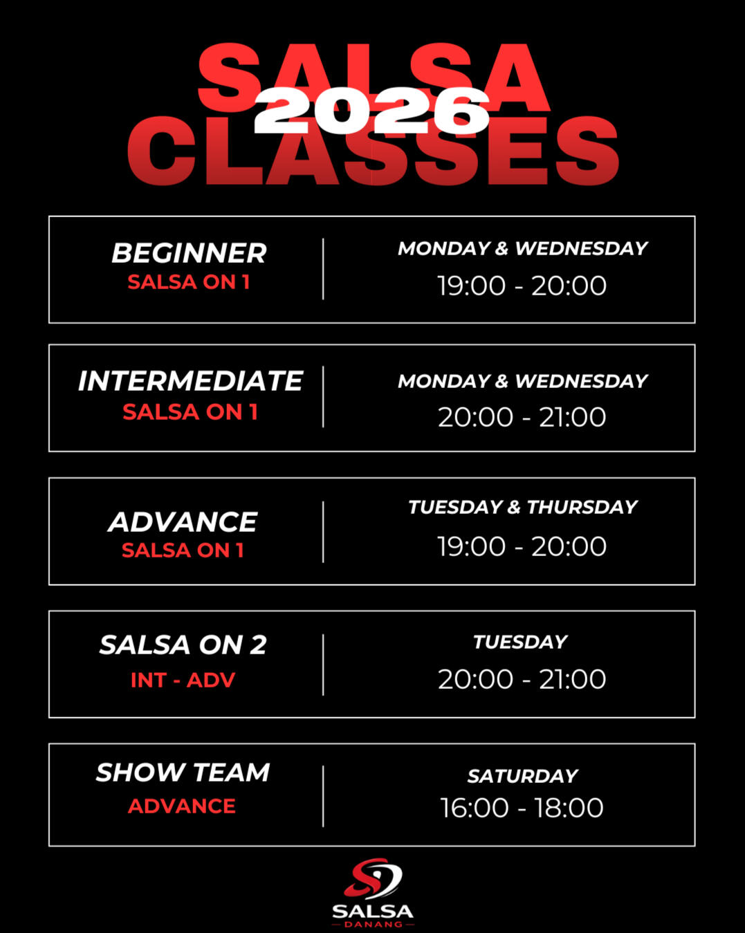 Learn directly from Latin dancers — we're from the culture, and we bring that energy to every class.Classes in English & Spanish-Vietnamese soon.Super friendly vibe — people come alone and leave with friends.Experience both partner dancing and solo footwork (shines).All levels welcome, from beginner to advanced.Weekly classes, central location, no pressure — just fun.